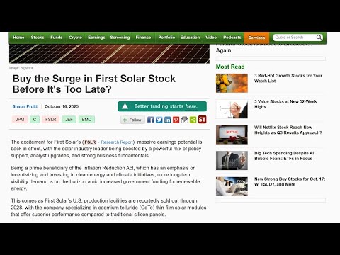 Greetings. I'm Sean Puit, Zach's equity strategist, and today I'm going to be discussing whether investors should buy the surge in First Solar stock before it's too late. So, the excitement for First Solar's massive earnings potential is back in effect with the solar industry leader being boosted by a powerful mix of policy support, analyst upgrades, and strong business fundamentals.and being a prime beneficiary of the inflation reduction act which has an emphasis on incentivizing and investing in clean ene ...