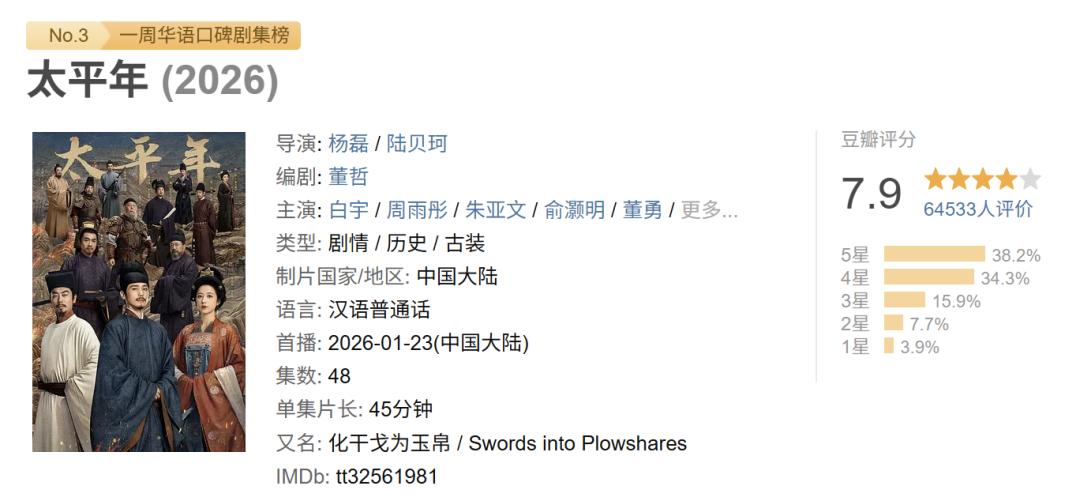 随着农历马年的脚步越来越近,长视频平台在春节档的布局日渐清晰。 长剧方面,从陆续开播、定档以及待播的重点项目来看,今年春节前后播出的剧集数量预计在20部左右,题材涉及历史、现实、古偶、悬疑、年代、现 偶、喜剧等多元赛道,基本覆盖了各个圈层受众的观剧需求。 然而比起隔壁短剧的声势浩大,长剧这边在经历了前两年春节档的接连"哑火"后似乎变得越发收敛。正在热播的头部大剧们仍在奋力冲刺试图扩圈,即将 列队上线的新剧们虽类型丰富却实力相对平均,难道2026长剧春节档真的就这样一"平"到底了? "该爆"的还没爆 论项目整体体量,其实近期上线的《太平年》《生命树》《唐宫奇案之青雾风鸣》《成何体统》等剧几乎代表了各平台在今年剧集春节档的较高水平,它 们之中大多数的收官时间也都会横跨春节假期。 其中适合春节热闹氛围的喜剧题材居多,最经典的当属已陪伴观众二十载的《乡村爱情》系列,最新一季已于2月10日登陆优酷。在正式开播前,以"赵四 葬礼"为开场的预告片便将词条#乡村爱情18赵四嘎了#推上热搜高位,到了正片中才知道是一场自导自演的"假死闹剧"。 而这些剧的市场表现亦不乏可圈可点之处,像已进入尾声的古装历史大剧《太平年》虽前期热度因 ...