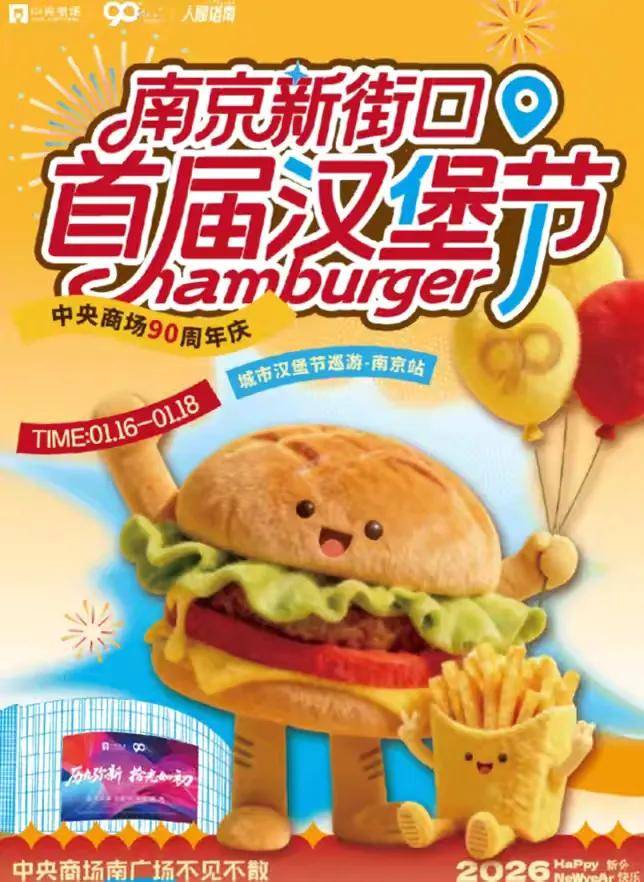 南京新街口首届汉堡节于1月16日在中央商场南广场正式开幕。本次活动恰逢中央商场成立90周年,汇聚 全国45家优质汉堡及餐饮品牌,展出上百款特色汉堡,为市民提供了一场融合美食与庆典的消费体验。 本次新街口首届汉堡节暨中央商场90周年庆活动受到市民广泛关注,截至活动首日下午,参与人数已突破 万人次。接下来的两天,活动将持续升温,更多特色汉堡与惊喜福利将持续释放,邀请广大市民前来共赴 这场美食与情怀交织的盛宴。 来源:中央商场 编辑:张静文 作为本次活动的核心亮点,新街口首届汉堡节堪称一场"汉堡盛宴"。现场汇聚了来自全国多地的创意汉堡 品牌,推出多款特色限定单品——如鹅肝肉桂苹果牛堡、见手青菌香脆骨和牛堡等,每一款都精准拿捏吃 货需求。活动现场人气爆棚,各品牌摊位前均排起长队,市民们争相品鉴打卡分享。中央商场同步策划场 内外互动体验环节,大力推进会员招新工作,扩大活动效应。 此次汉堡节的举办,与中央商场90周年庆形成强势联动,打造"吃、游、购"一体化的新消费场景。同时, 商场内还设置了多个特色打卡点与互动体验项目,东南门外的ProMax费列罗装饰成为网红打卡地,北门的 互动泡泡机营造出浪漫氛围,四楼玩未潮流运动馆还 ...
