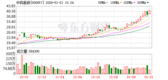 中钨高新持续走强,股价再创新高