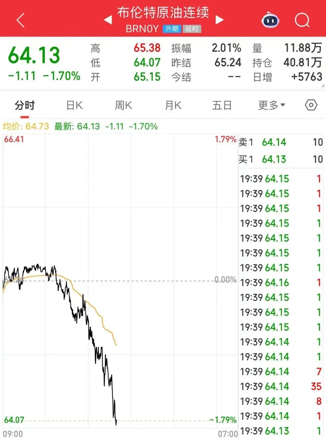 截至今晨收盘,WTI原油期货主力合约下跌1.57%,布伦特原油期货主力合约下跌1.23%。 贵金属方面,伦敦金现货价格收涨3.31%,报4935.75美元/盎司;伦敦银现货价格大涨近6%。沪金、沪银主力合约也大幅上涨。 转自:期货日报 原油市场传来利空,金价再创新高! 22日晚,美国能源部长赖特在世界经济论坛上呼吁将全球石油产量提高1倍以上,以满足不断增长的需求并防止能源贫困。他强调了全球能源供应和获取 方面面临的重大挑战。 受此影响,国际油价下跌。 | 布伦特原油连续, | BRNOY 外期 延时 | | | | | | | --- | --- | --- | --- | --- | --- | --- | | 11.88万 | 2.01% | 65.38 | 振幅 | Mala | 高 | | | 64.13 | 64.07 | 65.24 | 低 | 40.81万 | 昨结 | 持仓 | | -1.11 -1.70% 开 | 65.15 | 今結 | +5783 | 日增 | | | | 分时 | 日K | 園K | 月K | 更多, | 五日 | (0) | | 均价: 64.73 最新: 64.13 ...