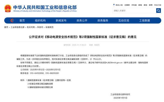 来源:央视新闻微信公众号 最近,工业和信息化部发布《移动电源安全技术规范》征求意见稿,这也被业界称为"最严"的充电宝安 全新标准,这一消息引发广泛关注。 这次的新标准"新"在哪儿?何时落地?新标准实施后,现有3C认证的充电宝还能继续使用吗? 新标准对充电宝安全 提出哪些要求? 据了解,《移动电源安全技术规范》这一新标准正处于征求意见阶段,尚未定稿。记者在工业和信息化 部官方网站看到,《移动电源安全技术规范》强制性国家标准(征求意见稿)于11月11日公示,对充电 宝整机、线路板及电池等几方面提出了要求。 有媒体援引业内人士的预计,或将有近七成现有产能因无法满足新标准的技术要求,可能被迫退出移动 电源市场。 记者了解到,一些依附产业链的小型充电宝组装厂,因缺乏核心研发能力,多依靠采购通用电芯和线路 板进行简单组装,可能会面临较大的转型压力。 广东某充电宝生产厂家的负责人认为,尽管安全标准大幅提升后,成本会增加,但行业转型升级势在必 行。 宁德新能源科技有限公司副总裁赵忠利认为,充电宝安全的核心是电芯安全,新标准对电芯的要求更严 格,短期会带来技术和成本压力,无疑对企业提出了更高的技术门槛和要求。高标准,能让真正有 ...