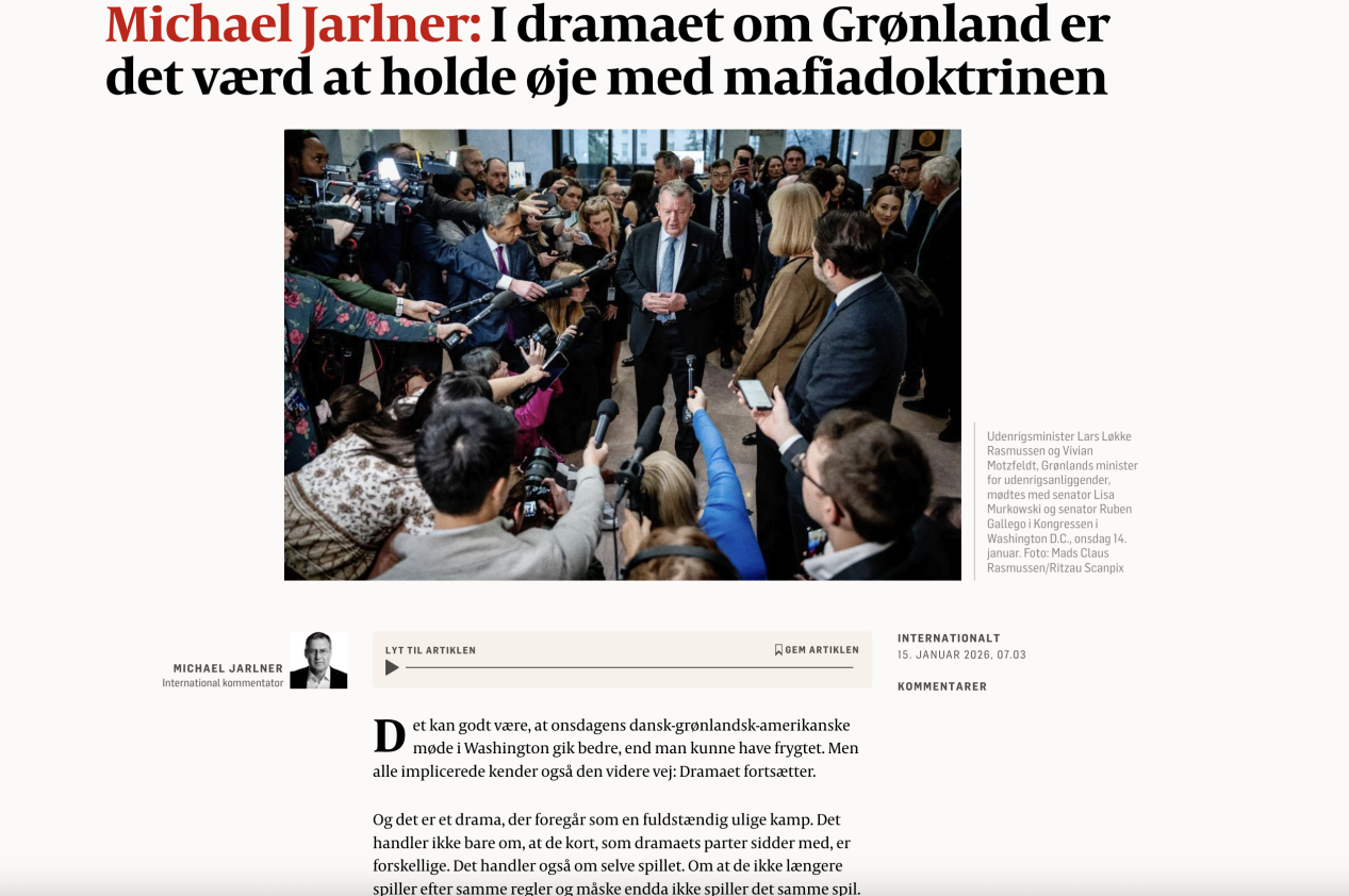 当地时间1月15日,法国总统马克龙在法国南部罗讷河口省的伊斯特尔空军基地向军队发表新年讲话期间,就格陵兰问题做出系列表态。他强调,在当前高 度紧张的国际局势下,要想保持自由,就必须被敬畏;要想被敬畏,就必须足够强大。马克龙同时明确表示,法国已向格陵兰派遣军事力量,未来还将通过 陆、空、海多种手段予以加强。目前,法、德、荷等欧洲多国已明确表态向格陵兰派遣军事人员。2026年伊始,围绕格陵兰岛的分歧,正进一步加深跨大西 洋关系的裂痕。 格陵兰岛之争:规则失衡的较量 丹麦外交大臣拉斯穆森和格陵兰岛自治政府外交部长莫茨费尔特于1月14日访问美国,同美国副总统万斯和国务卿鲁比奥举行会晤。会晤后,拉斯穆森表 示,丹麦和美国之间就格陵兰岛问题存在"根本性分歧"。 丹麦外交大臣 拉斯穆森:美国总统已经清楚地表明了他的立场,而我们持有不同的立场。因此,我们之间仍然存在根本性的分歧,但我们也同意保留分 歧。尽管如此,我们仍将继续进行对话。 丹麦《政治报》报道称,丹麦和格陵兰岛方面的谈判代表与美方未能就此达成一致,所有与会人员都清楚未来的走向,那就是这场风波仍在继续。而且,这 是一场实力悬殊的较量,不仅双方手中的牌不同,更在于游戏 ...