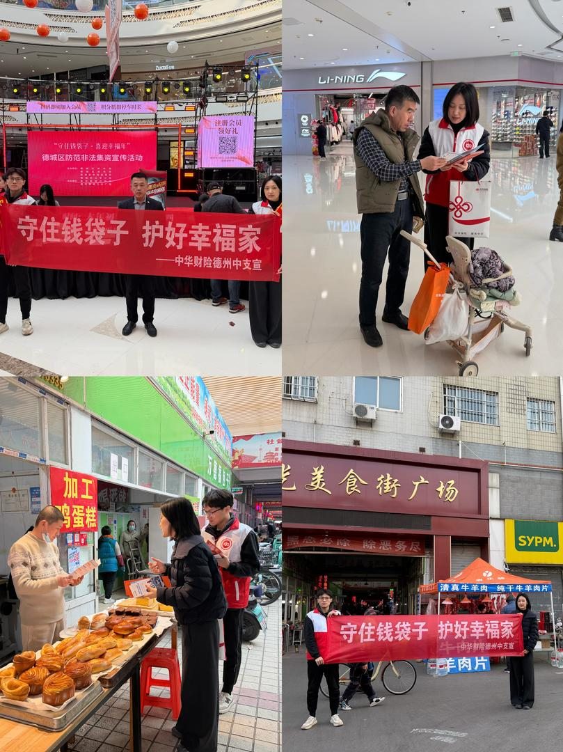 为切实做好春节期间防范非法金融宣传教育工作,2月5日,中华财险德州中支精心策划了覆盖多场景的系列宣传活 动,将一份份关乎财产安全的"特殊年礼"——防范非法金融知识,送到了广大市民手中。 "移动课堂"开讲,筑牢金融安全"防火墙" 问答互动解疑惑,防范技巧入人心 此次防范非法金融宣传教育活动,形式多样、内容贴近需求,犹如一股沁人心脾的清风,在岁末年初为德州市民的 财产安全增添了一份温暖的保障。中华财险德州中支用实际行动诠释了"服务至上、信守承诺、回报社会"的企业担 当,让这个春节不仅春意浓浓,更添安全与安心。 宣传小队走进热闹的阳光美食街广场、堤岭家园社区,鲜艳的横幅、通俗易懂的宣传折页,迅速吸引了过往市民的 目光。针对新市民、户外劳动者群体开展"一对一"讲解,向市民揭示非法集资、电信网络诈骗的常见手法和危害, 详解"不轻信、不透露、不转账"的安全准则,手把手指导群众守护自身财产安全,让专业金融知识在面对面交流中 真正入脑入心。 宣传小队工作人员在德州中支总经理助理苗栋的带领下走进万达商圈,设立起"金融安全咨询台"。围绕非法金融活 动的常见套路、识别方法等内容,针对老年人等易感群体,进行面对面、零距离的讲解。耐心 ...