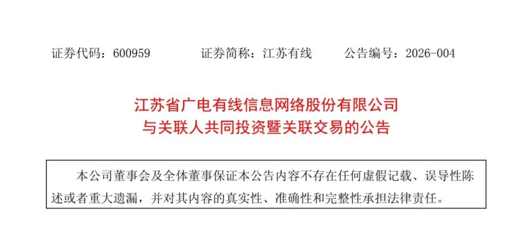 综合整理| 苗梦佳 2月9日,江苏有线发布《与关联人共同投资暨关联交易的公告》。 公告显示,为积极响应国家战略,进一步拓展公司在数字基础设施领域产业布局,培育"文化+科技"融合发展新的增长点,为公司文化 IP 数字化、广电网 络(维权)智能化等核心转型提供坚实的技术底座,江苏有线联合控股股东江苏省文化科技控股集团有限公司(以下简称省文科集团)及其他非关联方云 尖信息技术股份有限公司、上海熠知电子科技有限公司、城际云(江苏)科技有限公司、宿迁市楚润数据集团有限公司及南京新港开发有限公司共同发起 设立科技合资公司,开展智算设备业务。 据了解,江苏有线与省文科集团等7家企业主体共同投资设立科技合资公司,注册资本为 1.5 亿元,各方股东以现金方式出资,共同打造江苏区域本土化 ICT 与AI智算领导品牌,构建算力与数据产业。科技合资公司将构建以"自主硬件为基、场景方案为刃、算力运营为网、数据价值为核"的垂直一体化业务 模式。包括通用服务器、AI 智算服务器及信创/边缘定制一体机,以及垂直行业解决方案和数据增值服务等。 其中,省文科集团认缴出资5,100 万元,持股比例 34%;江苏有线认缴出资 3,000 万元,持股 ...