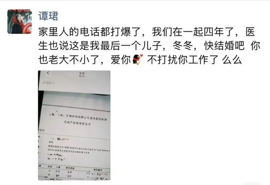 来源:债市研究 今天 16:30 ◎ 实况 V 上海)生物科技有限公司遗传基因检测 无创产前咨询意见书 情况 号: = 28118 r : 谭珺 检测送 检标 记 为 "谭珺"的 样 本 中 胎 儿 D N A 与 标 记 为 * 东 东 * 的 样 本 中 l 页 : 份 D N A 来 源 者 之 间 是 否 存 在 生 物 学 来 子 关 系 " I I T I The F : ------- 的 性别 人群 样本类型 #本编号 女 亚洲 血液 Ph = = 2811851 里 下州 指甲 P- I - ■ | ■ 26日 谭瑞 家里人的电话都打爆了,我们在一起四年 了,医生也说这是我最后一个儿子,冬 冬,快结婚吧 你也老大不小了,爱你贪 不打扰你工作了 么么 9天 11分钟前 谭珺 实在没办法呢 孩子需要爸爸妈妈 谭珺: 杨冬的啊 孩子不能没爸爸妈妈 1小时前 谭珺 杨冬 我怀孕了 你这么没良心的吗 好想哭哦 29 4 mins ago ● 公众号 · 花尔街之狼 < 详情 遭君 广发基金的杨冬为什么这么好色?真low 09:12 . 谭珺 09:13 还不洗澡 0.75 0 50 - 0 25 0. ...