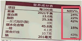预包装食品上的“NRV%”让人看不懂