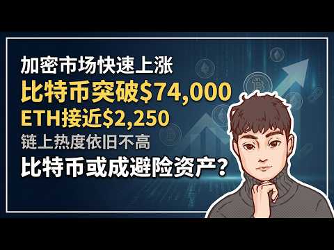 加密市场快速上涨,比特币突破7.4万美金,eth接近2250,链上热度依旧不高, 比特币或成避险资产?【Vic TALK第1596期】