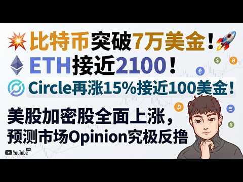 比特币突破7万美金!eth接近2100!Circle再涨15%接近100美金!美股加密股全面上涨,预测市场opinion究极反撸 【Vic TALK第1583期】