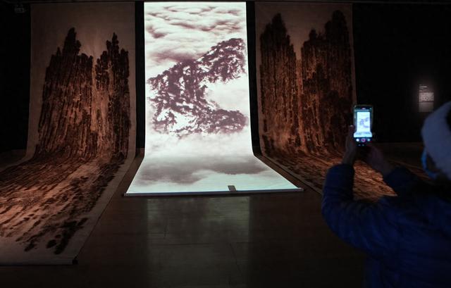 本次展览展出了8位当代青年艺术家的创作实践,集中呈现他们将科技融入艺术创作的探索。展品涵盖 装置、数字沉浸装置等多种媒介形态,既有从传统山水精神中蜕变而出的数字意境,也有直面人工智能 技术的思辨。 三幅高达10米的画卷从展厅上方倾泻而下,仔细观看其中一幅,竟有烟云缈缈,流瀑奔腾。艺术家赵梓 君创作的AI算法动态交互作品《墨山》,借助数字艺术手法,从全新纬度传达古典水墨山水的气韵。 丰富的视听渲染效果,令人恍如身临其境。 艺术家靳军创作的《平直曲面的天水如一》,作品灵感来源于南宋马远的《水图》。画面以现代艺术形 式呈现动态水纹状态,传达了独特的自然意境。 "未来诗篇,技艺的笔触和留白——科技艺术新样貌"展览现场。北京日报客户端记者 安旭东 会"流动"的山水画卷,在地磁扰动指数影响下"作画"的机械臂……1月16日,"未来诗篇,技艺的笔触和 留白——科技艺术新样貌"展览在中国美术馆举办开幕式,展现科技与艺术深度融合下诞生的多件佳 作。 "未来诗篇,技艺的笔触和留白——科技艺术新样貌"展览现场。本报记者 安旭东 而在艺术家苏永健的《混沦》中,两支机械臂的末端悬吊线锤,在运行过程中勾勒出一圈圈圆环,经由 实时生成的动态 ...