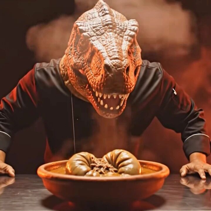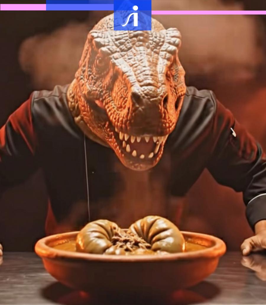 "一定要有梗才能留住人"。 10月下旬,一条名为《把远古沧龙做成六道菜(上)》的视频在B站爆火,上线三天播放量冲上700万。关键这是一段完全由AI生成的视频,时长6分23 秒,按以往规律,这两个buff叠在一起,是很难被流量眷顾的。 毕竟不少人对AI做的内容是"排斥的",但这条视频下的近5000评论中,多是对AI快速精进的画面质量与作者对AI掌控力的双重震惊。 这条片子确实也跟以往的多数AI视频不一样,它不切石头也不是小猫做饭,而是几个国家的厨师进行一场烹饪比赛,食材则为一条沧龙。是的,沧龙 ——一种6500万年前就已经灭绝的远古生物——把它做成菜,没见过吧。 开头是一群老外拿着锯锯肉和剁比人还高的排骨的宏大画面,镜头拉近、旋转、快速转换,人物出场冲突爆发,情节紧凑而有张力,一下便抓住了观众的 注意力。 ●《把远古沧龙做成六道菜(上)》视频开头 而要让人在这6分23秒中不流失,才是最难且重要的。为此,B站UP主"黄浦江三文鱼"(以下简称"三文鱼")上了很多"手段"—— 比如贯穿视频的各种热梗。首先登场的印度厨师做的"九转大肠";中国厨师是来自上海的"辛西娅",出场时自配背景音乐和解说,比如这句耳熟能详 的"最 ...