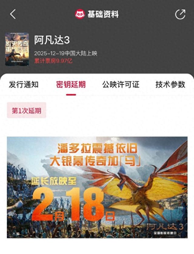 眼电影 来源:猫 转自:北京日报客户端 电影《阿凡达3》宣布密钥延期,延长上映至2026年2月18日,据猫眼专业版数据,截至当前影片累计票 房已超9.97亿。 ...