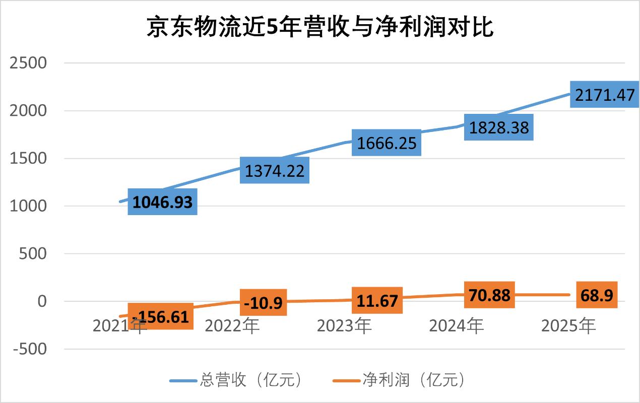 Core Viewpoint - JD Logistics is experiencing fluctuating profits despite a steady increase in revenue, raising questions about when it will overcome its profitability bottleneck [1] Financial Performance - In 2025, JD Logistics reported total revenue of 217.15 billion yuan, an 18.8% increase year-on-year; net profit attributable to shareholders was 6.65 billion yuan, up 7.2%; gross profit was 19.77 billion yuan, a 5.7% increase from 18.7 billion yuan the previous year; annual profit was 6.89 billion yuan, down 2.8% from 7.09 billion yuan [1] - Adjusted net profit for 2025 was 7.71 billion yuan, a 2.6% decrease; adjusted EBITDA was 20.60 billion yuan, a 1.3% increase from 20.34 billion yuan; adjusted EBITDA margin was 9.5%, down 1.6 percentage points from the previous year [1] Cost Reduction and Efficiency Improvement - JD Logistics management acknowledged a decline in profit margins for 2025 but expressed confidence in overall growth for 2026, attributing this to ongoing investments in cost reduction and efficiency improvements [3] - The integrated supply chain business, a key focus for JD Logistics, generated revenue of 116.2 billion yuan in 2025, a 33.0% increase; external integrated supply chain customer revenue was 35.9 billion yuan, up 11.2% [4] Customer Base and Market Expansion - The number of external integrated supply chain customers grew to 91,161, a 13% increase year-on-year; in Q4 2025, revenue from integrated supply chain logistics services was 35.6 billion yuan, accounting for 56.6% of total revenue, up nearly 10 percentage points from the previous year [5] - In 2025, revenue from JD Group was 80.3 billion yuan, accounting for 37% of total revenue, while revenue from external customers reached 136.8 billion yuan, making up 63% of total revenue, reflecting a 7.1% year-on-year increase [9][10] Strategic Acquisitions - JD Logistics completed the acquisition of the remaining 36.43% equity in Kuaixun Express in March 2025, achieving 100% ownership; in February 2026, it gained approximately 99.7% ownership of Debon Logistics, which is expected to stabilize profit levels [5][6] Global Expansion and Partnerships - JD Logistics is focusing on strengthening its presence in Europe, particularly in the UK, Germany, the Netherlands, and France, aiming for same-day and next-day delivery services [13] - A strategic cooperation memorandum was signed with DHL to enhance logistics capabilities in Europe, leveraging DHL's extensive end-network and cross-border advantages [14] Technology and Automation - JD Logistics is investing in AI technology across various logistics processes, including warehousing, sorting, and transportation, to optimize efficiency and reduce costs [21] - Capital expenditure is expected to be slightly higher than the 3%-4% range in 2025, with increased investments in warehouse automation and unmanned vehicles anticipated for 2026 [22]