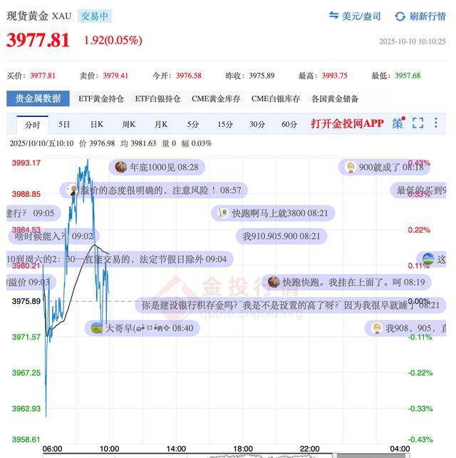 现货黄金价格自10月8日突破4000美元/盎司关口后出现回调,但这并未显著影响黄金交易市场的火热。 国庆假期后记者再访水贝黄金交易中心,看到品牌金店内仍然客流"扎堆",黄金饰品"以旧换新"受到追 捧。同时黄金回收业务明显升温,但也有不少消费者倾向于"持金观望"。 10月10日,10:10分现货黄金实时价格 10月9日,水贝黄金交易中心当日金价、回收价 "一口价"金饰 "以旧换新"受追捧 国庆中秋假期,飙涨的黄金牵动了不少消费者的心。10月9日,记者再次实地走访水贝黄金市场,看到 品牌金店顾客仍然络绎不绝,消费者扎堆"看金询价"。 在水贝黄金交易中心,几名女士围在柜台前,结伴试戴黄金手镯、手链、戒指等。忙着接待顾客的店员 抽空告诉记者,由于近期黄金涨势"凶猛",国庆期间"一口价"的金饰卖的最好。"我们水贝黄金是品牌 金饰,价格已经比知名大品牌要低一些,且节前没有调价,后续也没有调价计划,还没算上手工费。有 些老客户买了之后,没过几天又来回购。" 水贝黄金店面,客流扎堆咨询"一口价"婚庆三金饰品 水贝黄金店铺内,一个长柜台里整整齐齐的陈列了婚庆"三金""五金"饰品,其中"一口价"的婚庆黄金饰 品"也格外受青睐。一 ...
