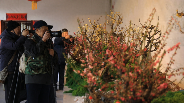 新春已至,梅香渐浓 百余盆古桩盆景与山茶、兰蕙、海棠等 年宵花卉争芳斗艳 15米《百骏图》梅影长卷在蜡梅香中徐徐铺展 一座悬于半空的"悬浮花园"令游人流连忘返 更有寻梅地图串起全园梅景 让园林的春意从室内流淌到室外 如果说花卉是展览的灵魂,那么空间设计便是今年最令人惊叹的华章。赵晓燕特别提到,本届展览在传 承中大胆创新:"我们延续了古典园林的气质,从清宫绘画中撷取梅花古诗词作为展陈背景;同时又引 入科技手段,让传统园林艺术'活'起来。" 十间房展厅内,一幅15米长的《百骏图》蜡梅盆景长卷尤为震撼。百匹骏马或奔腾或憩息,以梅、兰、 菊、松等花木点染其间,寓意国运昌隆、生机勃勃。与之相邻的10米《踏雪寻梅》长卷,则通过诗画交 融的手法,将冬日御苑寻梅之雅趣凝练于方寸之间。 近日,颐和园第十五届"傲骨幽香"梅花、蜡梅迎春文化展在畅观堂翩然启幕。这是一场以梅为媒、以园 为卷的新春雅集——今年展览以"遇见梅景,马到成功"为主题,借丙午马年之吉言,邀市民在暗香浮动 中遇见传统与现代交融的园林美学。 步入畅观堂主展厅,一盆盆梅花、蜡梅古桩盆景错落有致,疏影横斜间暗香盈袖。独干式挺拔俊逸,临 水式飘逸欲倾,斜干式险中求韵,组 ...