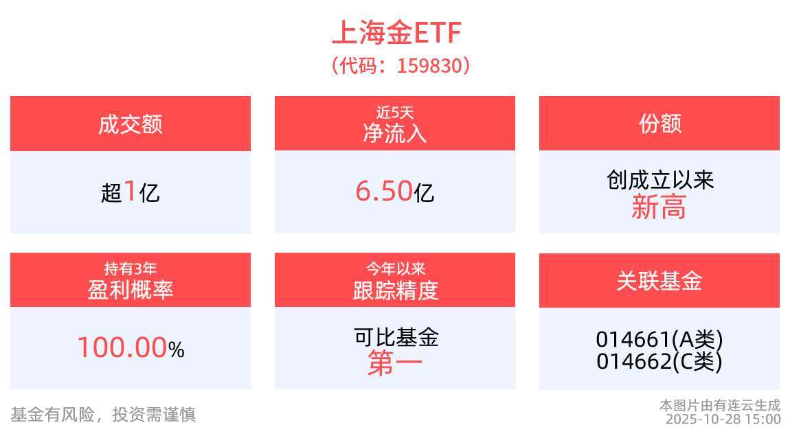黄金三日跌超4%,上海金ETF(159830)逆市“吸金”不止,近5日净流入6.5亿元,高居同类产品第一