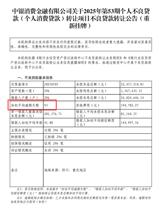 Core Viewpoint - The article highlights the accelerated pace of non-performing loan (NPL) transfers by consumer finance companies in response to regulatory encouragement for the transfer of bad assets, indicating a significant shift in the market dynamics for asset management [1][4]. Group 1: Market Activity - As of July 16, 15 licensed consumer finance companies have published 163 announcements for NPL transfers on the Silver Registration Center, including major institutions like Zhaolian, Ant Group, and Industrial Bank [2]. - Notably, Industrial Bank's consumer finance division alone has around 100 transfer transactions [2]. Group 2: Asset Transfer Details - The transfer prices of individual asset packages vary significantly due to factors such as the duration of asset defaults and borrower demographics. For instance, a personal NPL package from Industrial Bank with an outstanding principal of 1.7257 million yuan had a starting auction price of 303,000 yuan, approximately 18% of its value, while another package from Hubei Consumer Finance had a starting price of only 188,000 yuan for 14 million yuan in assets, reflecting a mere 1% of its value [4]. Group 3: Regulatory Environment - The rapid development of the NPL transfer market is attributed to enhanced regulatory requirements aimed at risk resolution, which have improved the efficiency of bad asset disposal. Since 2025, the National Financial Regulatory Administration has focused on guiding and regulating market development from the perspective of asset acquirers [4]. - Key regulatory documents, such as the "Guiding Opinions on Promoting the High-Quality Development of Financial Asset Management Companies" and the "Interim Measures for the Supervision and Management of Local Asset Management Companies," encourage asset management companies to increase their acquisition, management, and disposal of NPLs under controllable risk and sustainable commercial conditions [4]. Group 4: Industry Impact - The release of the regulatory framework for local AMCs is seen as a milestone for the industry, clarifying the responsibilities and main business areas of local AMCs while delineating operational red lines such as "false off-balance-sheet" and "benefit transfer" [5]. - These measures are expected to enhance the internal control and compliance management levels of local AMCs, promoting a healthy and sustainable development of the NPL transfer market [5].