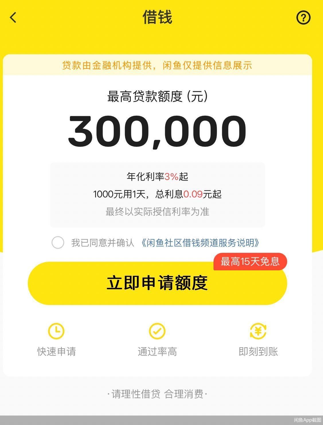 政策驱动下,消费金融市场迎来结构性调整。继国家金融监管总局发布通知明确,将个人互联网消费贷 款金额上限从20万元提至30万元整后,多家银行率先对消费贷产品进行"提额"操作,如今助贷市场也有 跟进动作。 截至4月21日,北京商报记者注意到,包括饿了么、闲鱼等平台,京东金条、度小满等助贷产品纷纷将 个人消费贷最高额度提升至30万元,不过部分机构在布局上出现"跨平台差异化"。业内指出,额度升级 释放消费潜力,但也带来风控新挑战,机构后续更要确保贷款质量,避免不良贷款上升。 "最高贷款额度30万元,年化利率3%起,1000元用一天,总利息0.09元起,以实际授信利率为准。"北京 商报记者注意到,不同于此前的最高额度20万元,闲鱼最新借款页面中,已将额度上调至30万元。 与大部分互联网平台金融布局的路径相似,闲鱼"借钱"采用纯导流的助贷形式。根据页面展示,该贷款 由金融机构提供,闲鱼仅进行信息提示,最终审批权归属于合作金融机构。 除了闲鱼外,阿里系另一平台饿了么同样有所跟进,后者页面将最高贷款额度上提至30万元,年化利率 为3%至24%,不过该额度上限仅覆盖饿了么运营的自营借钱服务,北京商报记者点击"更多第三方借贷 产 ...