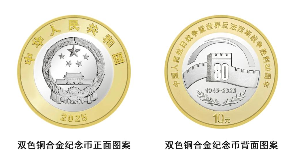 中国人民银行定于2025年9月3日起陆续发行中国人民抗日战争暨世界反法西斯战争胜利80周年纪念币