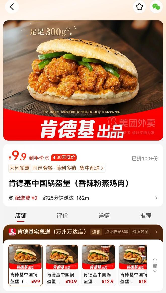 肯德基与美团拼好饭联合定制套餐,推出锅盔堡、黄焖鸡等新品