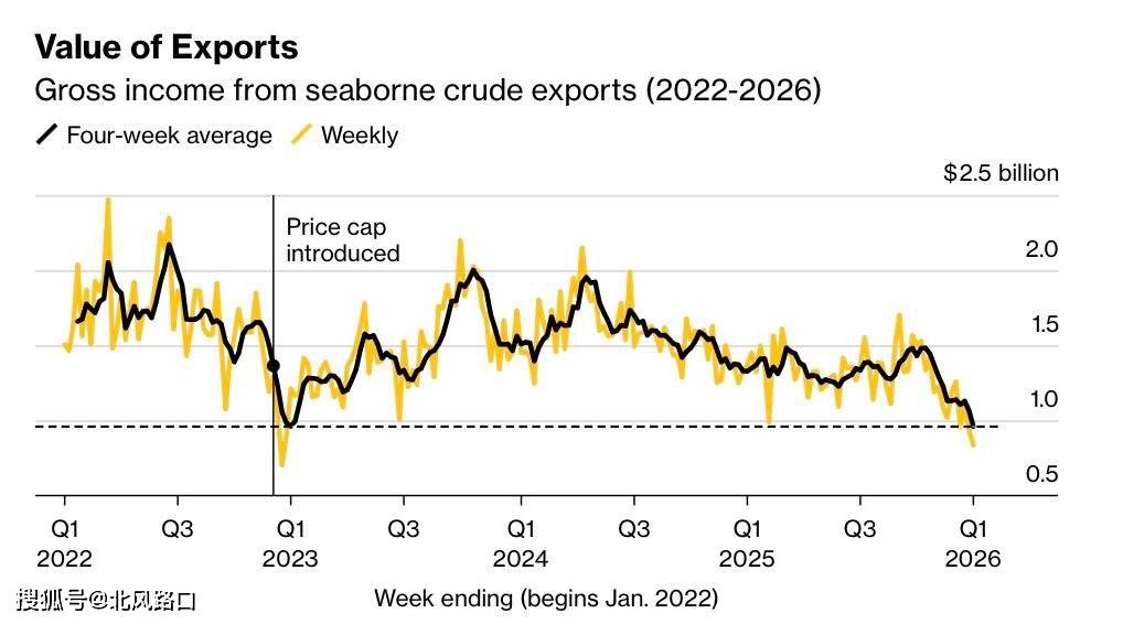 俄罗斯石油出口收入暴跌至2022年战争开始以来的最低水平