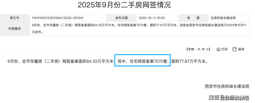 今天,官方发布了西安9月二手房的网签情况,就住宅方面来看,环比和同比数值双双上涨,分别为4.34%和1.58%! 具体到数值来看: "9月西安的存量房备案面积约84.33万㎡;其中,住宅网签备案7570套,面积77.87万㎡。" | 索引号 | 1161010001335318XX/2025-001341 | 发布日期 | 2025-10-11 15:03 | 来源 | 住房和城乡建设局 | | --- | --- | --- | --- | --- | --- | | 内容概述 | 9月份,全市存量房(二手房)网签备案面积84.33万平方米,住宅网签备案7570套、面积77.87万平方米,消息由西安市住房和城乡建设局于2025年10月11 | | | | | | | 日发布。 | | | | | 以上两个指标全部增长,这换哪个城市摊上不得迷糊? 那大部分城市还真都是迷糊(下滑)的,唯独北京,上海,深圳出现了上涨... 根据数据显示,北京9月二手住房网签1.32万套,环比、同比分别增长18.3%、24.1%。 上海市场同样表现活跃。在"沪六条"等政策持续带动下,9月二手房网签成交量达20389套,环比8月微涨 ...