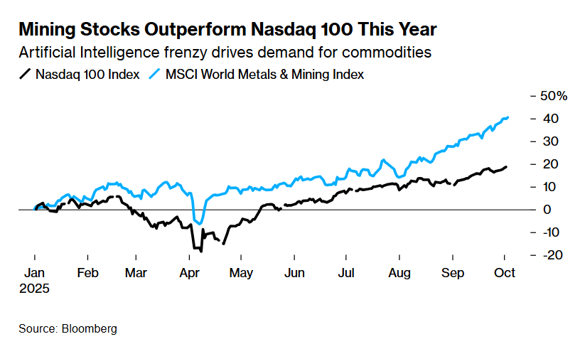 智通财经APP获悉,根据华尔街金融巨头美国银行(BofA)策略师团队的最新观点,投资者们可通过将AI相关投资标 的与那些和全球经济增长密切相关联且估值相比于美国科技巨头们便宜得多的股票(比如资源类股票)相结合,来更 好地配置并参与以人工智能为核心的投资热潮——这些与经济增长密切相关的股票标的有望大幅受益于AI技术所带 来的人类社会生产效率大幅提升。 此外,美银最新公布的这份研报还显示,在本十年的后半段(即2025-2030年),市场将更加倾向于中国四大科技巨头 而不是美股七巨头——即美银重点聚焦的"BATX",分别代表百度(Baidu)、阿里巴巴(Alibaba)、腾讯(Tencent)和小米 (Xiaomi)。 美银还表示,市场更加倾向于安全体系构建、国家干预、人口/技术转变和新资产投资,而全球化、美联储独立性以 及"美股七巨头"这一曾经时期(2020-2025)的全球市场宠儿则都有可能被视为已经过了顶峰时期。 占据标普500指数以及纳斯达克100指数高额权重(大约35%)的所谓"美股七大科技巨头",即"Magnificent Seven",它 们包括:苹果、微软、谷歌、特斯拉、英伟达、亚马逊以及Faceb ...