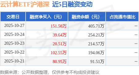 云计算ETF沪港深:10月27日融资净买入151.5万元,连续3日累计净买入211.65万元