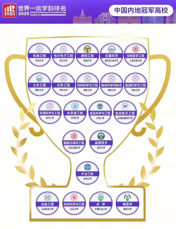 中国内地高校的全球冠军学科增加到21个。 随着新一轮科技革命和产业变革加速演进,很多新的研究方向都体现出交叉学科的特质,这也在高校学 科的专业设置和新的学科排名中得到体现。 日前,高等教育评价专业机构软科发布2025"软科世界一流学科排名"(下称"GRAS")。今年的排名 中,中国内地高校在电力电子工程、生物医学工程、材料科学与工程3个学科首度问鼎世界第一,使得 中国内地高校的全球冠军学科增加到21个。 同时,今年的排名新增人工智能、机器人科学与工程两个学科,排名学科数达到57个,覆盖理学、工 学、生命科学、医学和社会科学五大领域。 GRAS的排名对象包括全球3000多所大学,最终发布的榜单展示了92个国家和地区的2000余所高校的近 2万个学科点。 内地高校21个冠军学科 材料科学与工程由于应用场景较广,在经历产业结构升级,也成为近年来就业率较好的领域。工信部数 据显示,2024年我国新材料产业规模达7.8万亿元,同比增长13.5%。教育部2024年公布的新增的21个工 科专业中,6个与材料创新直接相关,包括智能材料与结构、光电信息材料等交叉领域。清华大学在该 学科2023年首次进入全球前五,并于今年首次拿 ...