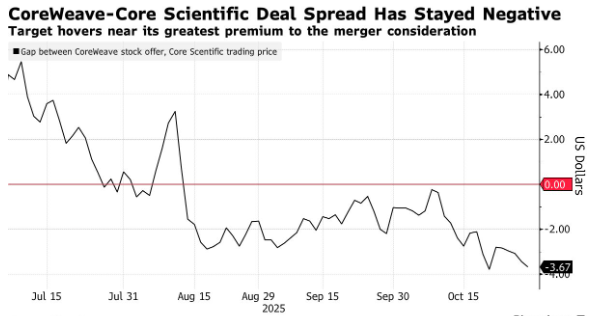 股东反对报价低,市场定价CoreWeave(CRWV.US)收购Core Scientific(CORZ.US)“无望实现”