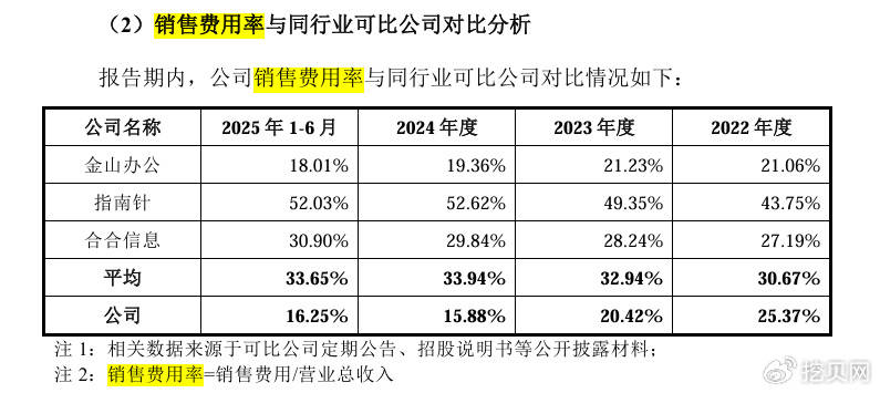 来源:挖贝网 2025年10月10日,上交所受理了企查查的上市申请,公司拟登陆上交所主板。 招股书显示,企查查是一家专业的商业大数据综合服务商,致力于提供准确、高效、便捷的商业数据服务,帮助 用户快速了解各类商事主体的信用、风险、商机、资讯等,从而提高决策效率,赋能业务发展。 | 公司名称 | 2025年1-6月 | 2024 年度 | 2023 年度 | 2022 年度 | | --- | --- | --- | --- | --- | | 金山办公 | 18.01% | 19.36% | 21.23% | 21.06% | | 指南针 | 52.03% | 52.62% | 49.35% | 43.75% | | 合合信息 | 30.90% | 29.84% | 28.24% | 27.19% | | 平均 | 33.65% | 33.94% | 32.94% | 30.67% | | 公司 | 16.25% | 15.88% | 20.42% | 25.37% | 对于这种差异,企查查的解释较为简单,仅表示"报告期内,由于各公司产品及服务有较大差异,客户构成面向 不同的客户群体,销售模式存在差异,因此销 ...