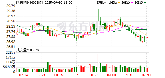 伊利股份(600887)7月30日主力资金净流入7034.40万元