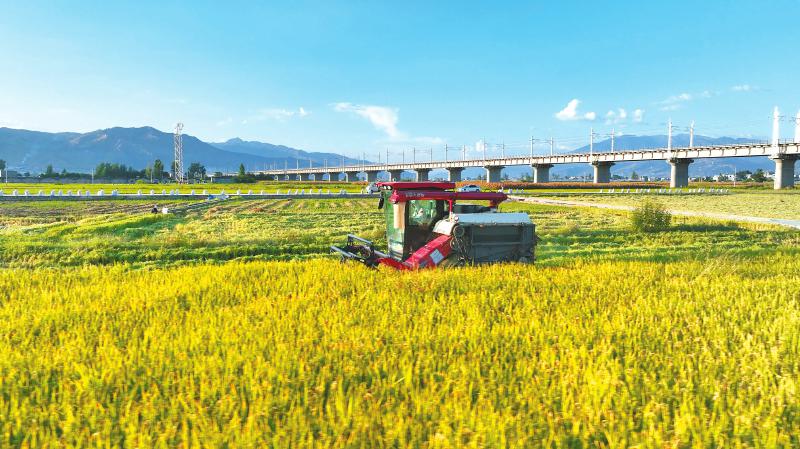 安宁河谷水稻丰收,收割机在田间忙碌。 西昌市融媒体中心供图 粮 ●小春粮食播种133.7万亩,总产32.26万吨,较去年增产6400吨,增长逾2% ●大春粮食播栽606万亩任务全面落地,其中水稻81.5万亩、玉米290万亩、马铃薯196.2万亩 果 ●会理石榴种植面积达40万亩,年产量80万吨,年综合产值超70亿元 ●盐源苹果种植总面积达43.2万亩,预计年产量75万吨,年综合产值40亿元 10月1日,越西县普雄镇且拖村,彝族尝新米节登场。在金色稻浪间,当地群众以新收的稻谷为礼,摆下一场 丰收与文化交融的节日盛宴,吸引众多游客到来,共庆国庆佳节、共享丰收欢乐。 粮丰收、果飘香,勾勒出凉山各地乡村蓬勃发展的新气象。近年来,凉山巩固拓展脱贫攻坚成果同乡村振兴 有效衔接,推动农业基础更加稳固、农村地区更加繁荣、农民生活更加红火。 截至目前,凉山已建成16个现代农业产业园区,形成"5+2+2+N"农业产业发展体系,构建起"1个省四星级、2 个省三星级、8个州级、2个县级"梯次集群式现代农业产业发展矩阵,以多种"粮"技谋丰收,"天府粮仓凉山片 区"建设正酣。 粮丰收 三项举措助力高产攻关 近日,西昌市佑君镇的稻田里,轰 ...