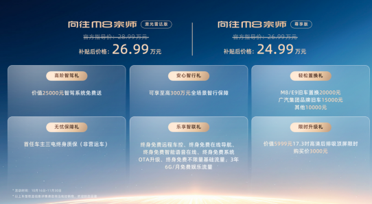 限时补贴价24.99万元起!传祺向往M8宗师正式上市