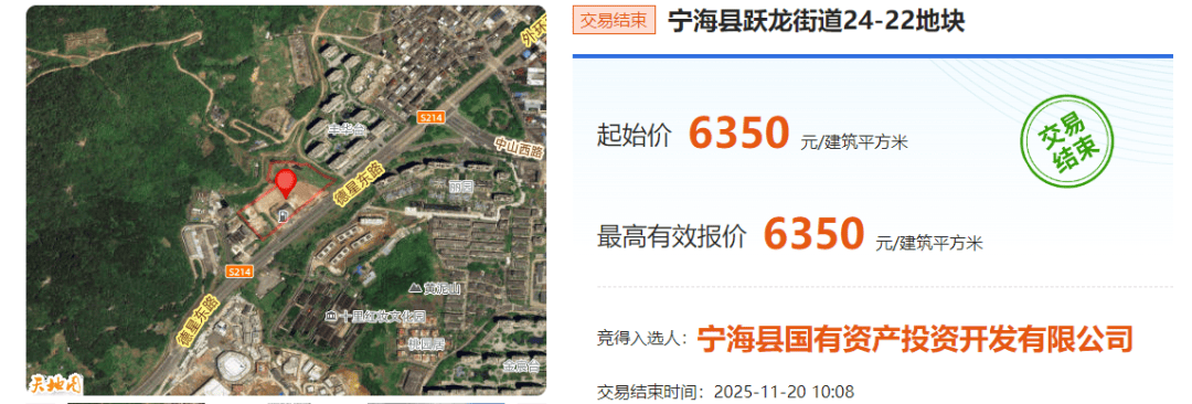 邻近十里红妆文化园,成交楼面价6350元/㎡!宁海跃龙街道1宗宅地出让!