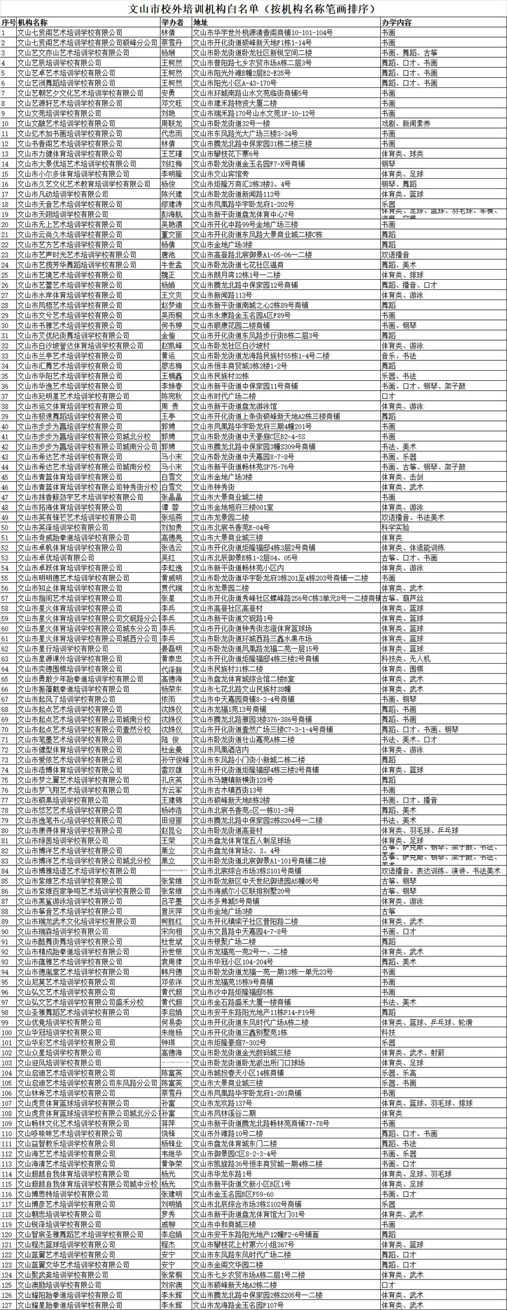 文山家长速查!官方认证的校外培训机构名单来了