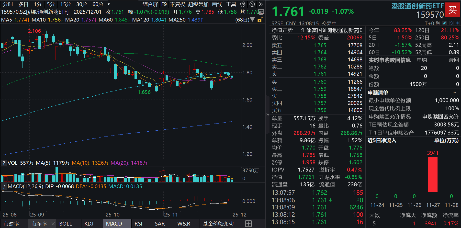 信达生物银屑病新药获批,百利天恒首笔2.5亿美元里程碑到账!港股通创新药ETF(159570)回调超1%,8000万元资金狂涌!
