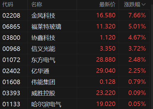港股异动丨电力设备股活跃 金风科技大涨近8% 协鑫科技涨近5%