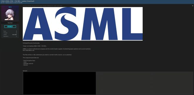 154个数据库被暗网黑客窃取?ASML回应