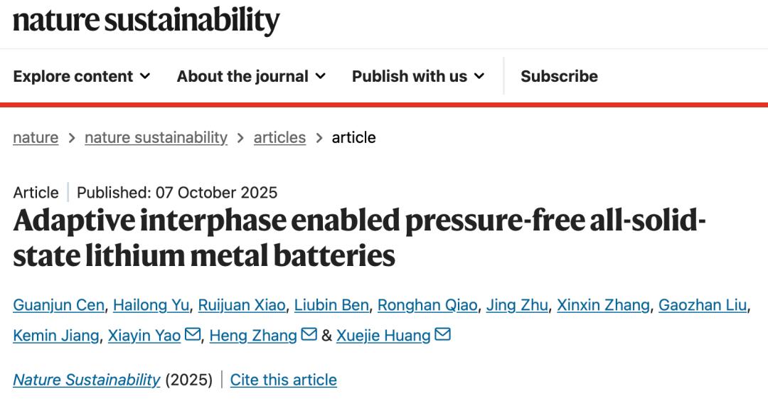 国庆期间,对于这两年热炒的全固态电池来说,技术突破的消息像"下饺子"一样。 一个是10月7日,中国科学院等黄学杰团队在《自然-可持续发展》(Nature Sustainability)上发表了全固态电池研究的最新论文。连新华社也做了报道, 众多媒体转载。而这项研究的核心在于,突破全固态电池的"固-固界面"难题。 根据论文,这项研究可以使固态电池在充放电的时候形成一层DAI(动态自适应界面,Dynamic Adaptive Interface),最终在低压甚至零外压下维持稳定 循环。在电池脱离实验室环境的情况下,软包电池实现300次循环后容量仍高于70%,并支持5C级充放倍率。 另外一则是,中国科学院金属研究所的科研团队,也用一项"分子尺度"的创新,大幅降低了固态电池的界面阻抗、提升离子传输效率,相关成果登上《先 进材料》(Advanced Materials)。 还有,节前清华大学张强教授团队也有一项固态电池电解质相关的研究被《自然》(Nature)收录,也就是说,中国科研团队接连拿出三项重磅的技术论 文,不断宣告这个领域的重大突破。 当然,这三项技术还在论文和实验室阶段,离实际的全固态电池商业化,工程化应用 ...