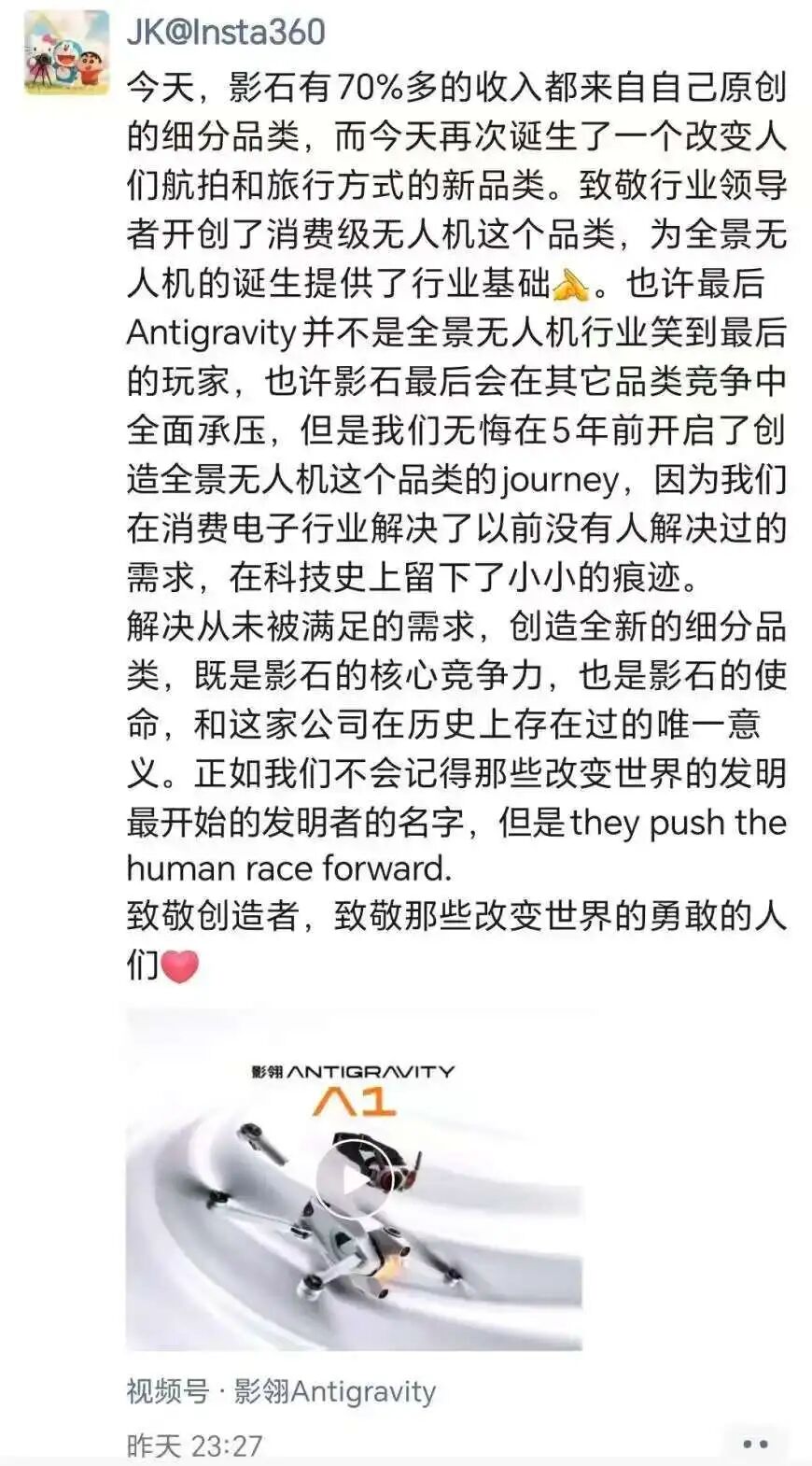 Core Viewpoint - The launch of the Yingshi A1 panoramic drone represents a significant challenge to DJI, which has a revenue ten times greater than Yingshi, indicating a competitive shift in the drone market [1][3][18] Group 1: Product Launch and Market Position - Yingshi officially launched the Yingshi A1 panoramic drone on December 4, 2023, in a unique marketing event using a hot air balloon [1] - The Yingshi A1 is seen as a provocative product aimed at DJI, marking a notable attempt to redefine product categories within DJI's stronghold [3][18] - The competitive landscape is evolving, with Yingshi's new product potentially threatening DJI's market dominance, although the actual impact remains uncertain [3][18] Group 2: Competitive Dynamics - DJI's recent release of the Osmo 360 panoramic camera in July 2023 has intensified competition, as it directly targets Yingshi's market [3][18] - The technology industry often determines success based on product definition rather than just specifications or marketing, highlighting the importance of innovation in shaping consumer perceptions [3][18] - The emergence of new competitors, including smartphone manufacturers, poses additional challenges to DJI, as they seek to leverage high profit margins in the imaging market [18][20] Group 3: Leadership and Control - DJI's founder, Wang Tao, exhibits a strong desire for control, which influences company culture and employee dynamics [6][8][11] - Recent departures of key personnel from DJI to competitors like Yingshi indicate a potential erosion of Wang Tao's control and influence within the industry [13][14] - The competitive landscape is becoming increasingly complex, with both internal and external factors challenging DJI's previously unassailable position [22][23]