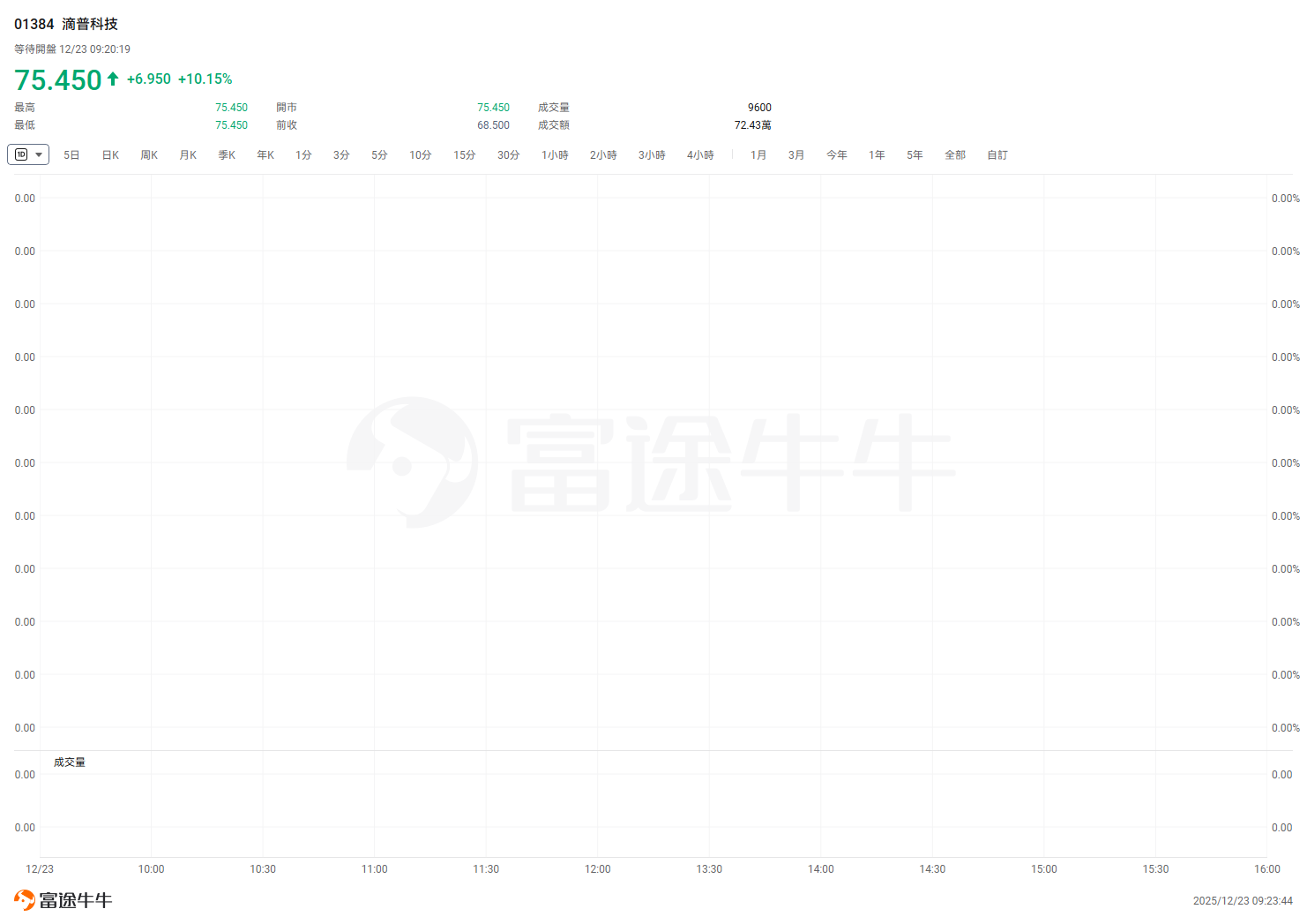 | 最高 | | | | | 75.450 | | 開市 | | | | | 75.450 | 成交量 | | | | 9600 | | | | | | | --- | --- | --- | --- | --- | --- | --- | --- | --- | --- | --- | --- | --- | --- | --- | --- | --- | --- | --- | --- | --- | --- | --- | | 最低 | | | | | 75.450 | | 前收 | | | | | 68.500 | 成交額 | | | | 72.43萬 | | | | | | | 国 | 5日 | 日K | 周K | 月K | 季K | 年K | 1分 | 3分 | 5分 | 10分 | 15分 | 30分 | 1小時 | 2小時 | 3小時 | 4小時 | | 1月 | 3月 | 今年 | 1年 | 5年 | 全部 | | 0.00 | | | | | | | | | | | | | | | | | | | | | | | | 0.00 | | | | | | | | | | | | | | | | ...