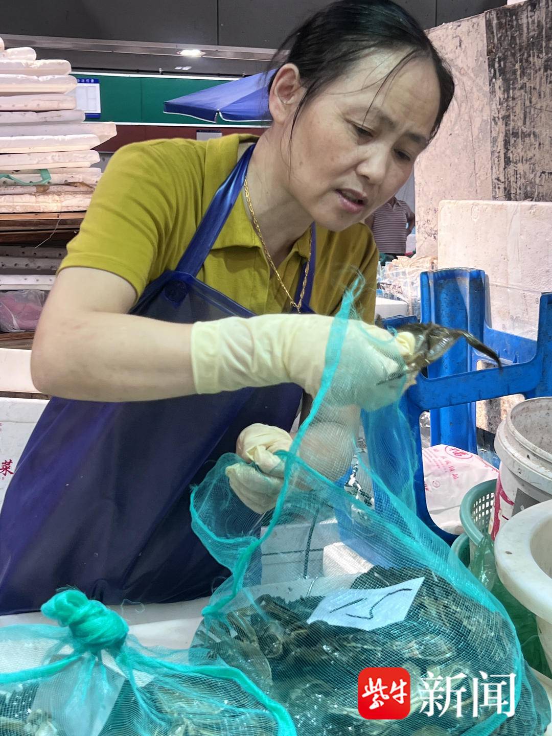 上午9点半,记者在苏州姑苏区娄门农贸市场水产区域看到,正在售卖"六月黄"的摊位有四五家,摊主们将螃蟹按品相、规格分类用网兜扎好,等待顾客 挑选。来自阳澄湖地区的摊主许阿姨正在给螃蟹进行打包,她熟练地在泡沫箱里放上冰块,把20个螃蟹摆放整齐,再封好箱子,保证送达时仍然保持螃蟹 鲜活状态。 连日来,苏州持续高温,伴随着"秋老虎"不断发力,一年一度的"六月黄"螃蟹销售也进入了尾声。扬子晚报/紫牛新闻记者走访市场了解到,目前"六月 黄"按照个头大小,零售价在每斤25-45元之间。一位农贸市场摊主告诉记者,不少市民抓住下市前最后的尝鲜机会,近期周末每天能卖出100多斤。 "'六月黄'的销售时间为每年5—9月,再过没多久要下市了,开始卖大闸蟹了,"许阿姨说,最近"六月黄"的肉质逐渐饱满,因水质不同,口感比外地蟹鲜 甜,公母都有黄,市场反响还是不错的。记者得知,1两大小的"六月黄"售价为每斤25元,1两半的是每斤35元,2两的卖到每斤45元。"买回家烧面拖蟹, 很实惠。"顾老伯逛完菜场,来到许阿姨的摊位上,挑选了5个2两左右的"断脚蟹",总共43元。 "这位老顾客一直在我这里买螃蟹,今天要带一箱去外地亲戚家,天气炎热,'六 ...