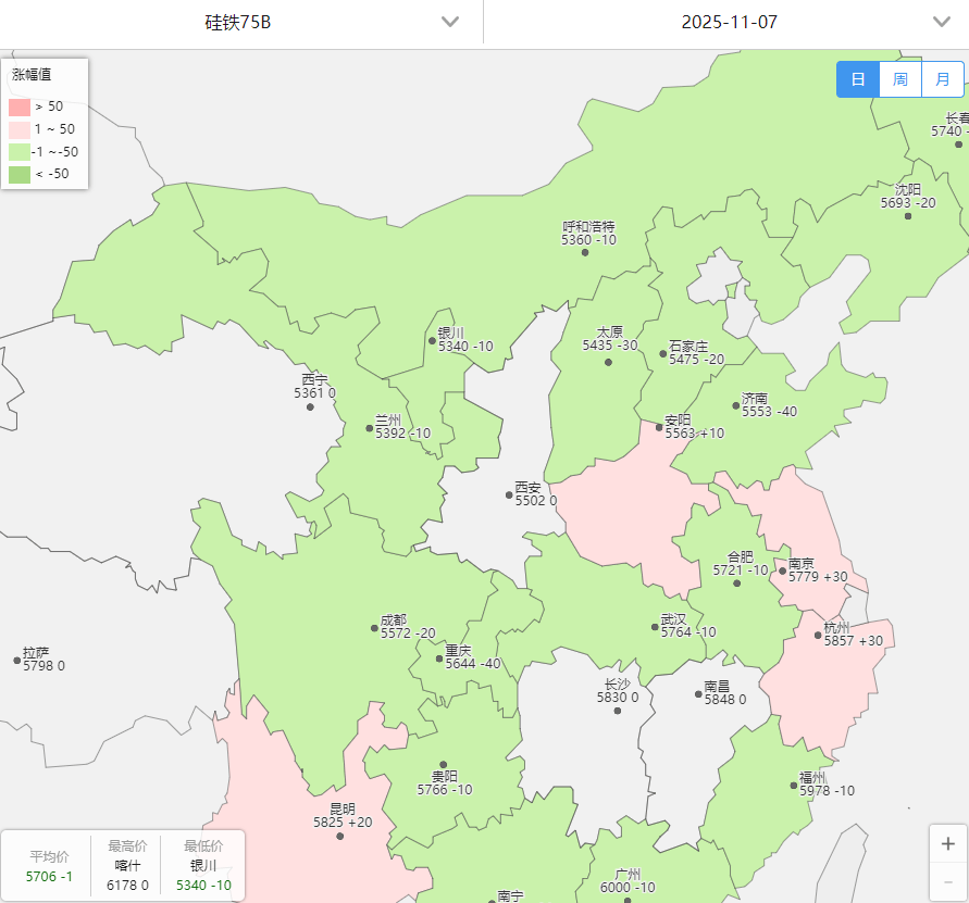 2025 年 11 月 12 日 | | 项 目 | | 价 格 | 较前一交易日 | 单 位 | | --- | --- | --- | --- | --- | --- | | | 硅铁:FeSi75-B:汇总价格:内蒙 | | 5250 | +30.0 | 元/吨 | | 现 货 | 硅锰:FeMn65Si17:内蒙 | | 5620 | - | 元/吨 | | | 锰矿:Mn44块 | | 40.2 | +0.2 | 元/吨度 | | | 兰炭:小料:神木 | | 820 | - | 元/吨 | | | 期现价差 | 硅铁 (现货-01期货) | -238 | +130 | 元/吨 | | | | 锰硅 (现货-01期货) | -144 | +56 | 元/吨 | | 价 差 | 近远月价差 | 硅铁2601-2605 | -38 | 2 8 | 元/吨 | | | | 锰硅2601-2605 | -58 | 0 | 元/吨 | | | 跨品种价差 | 锰硅2601-硅铁2601 | 276 | 4 4 | 元/吨 | | | | 锰硅2605-硅铁2605 | 296 | 7 2 | 元/吨 | | ...
