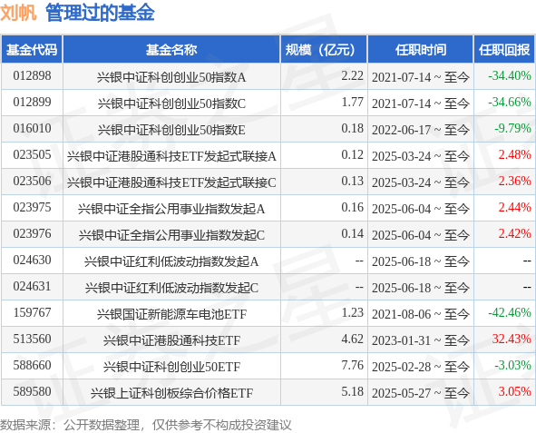 兴银上证科创板综合指数增强发起A基金经理变动:增聘刘帆为基金经理