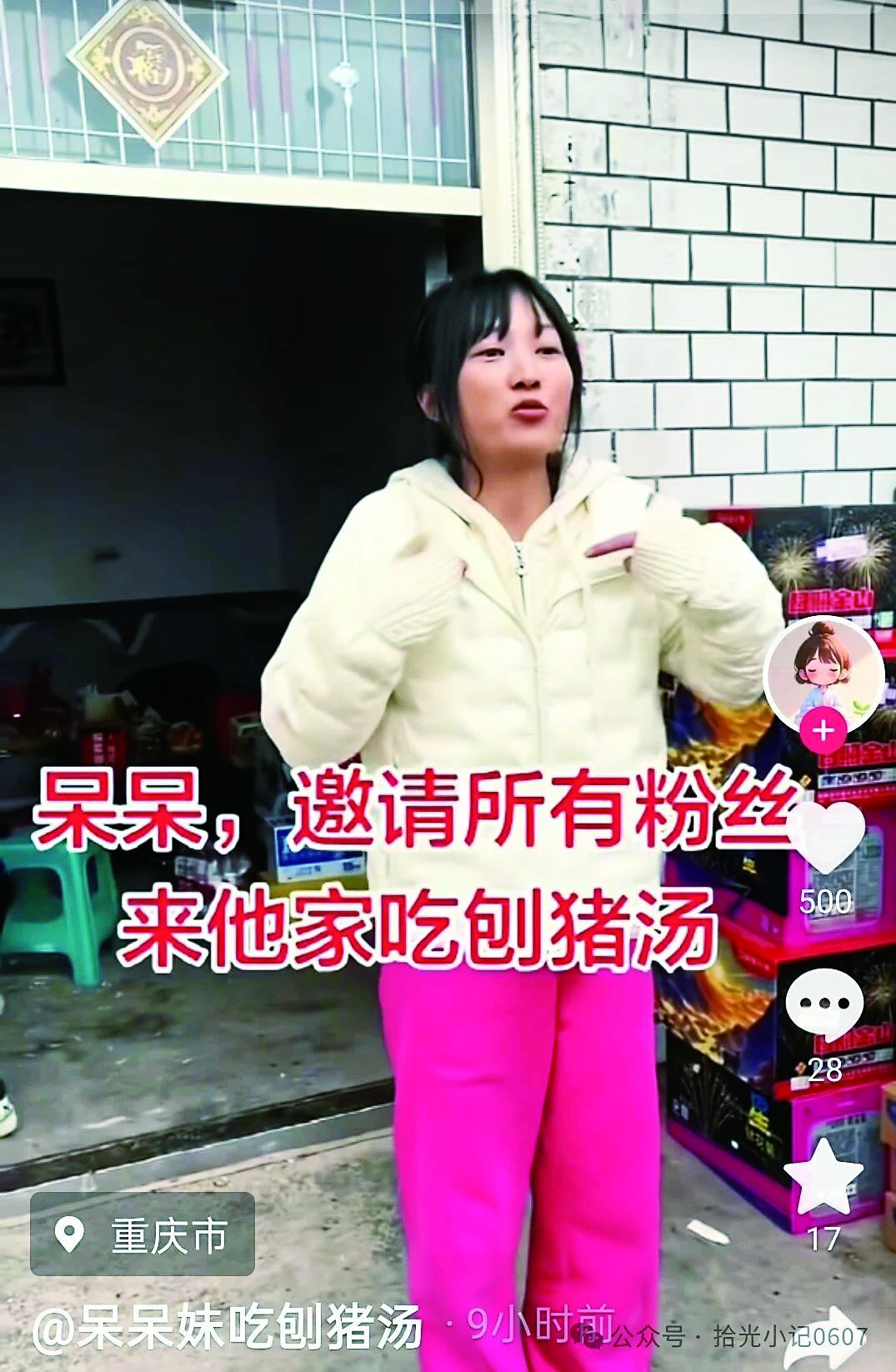 极目新闻记者 刘琴 实习生 严阮木子 "1月11日我家要杀两头猪,有人来帮我按猪吗?请你吃刨猪汤!年迈的老父亲年龄大了,我怕他按不过 猪。"重庆合川农家姑娘呆呆的求助,让一场原本普通的农村杀猪宴变成了一次别开生面的万人狂欢, 仅仅两天时间,近一万名来自各地的网友纷纷涌进这个小村。 在网络中,关于这场杀猪宴是另一种狂欢。截至1月13日中午,呆呆的账号粉丝从不足500人一路暴涨至 突破192万;相关话题播放量高达8000万,直播间最高在线人数突破10万、累计点赞超4000万。 这不禁让人思索,一次普通的农村杀猪宴,为何能成为2026年中国的首个文旅爆款? 一场真诚的双向奔赴 1月9日凌晨,呆呆发布了一条视频称:"1月11日我家要杀两头猪,有人来帮我按猪吗?请你吃刨猪汤! 年迈的老父亲年龄大了,我怕他按不过猪。"结尾她还俏皮地补了句:"就想家门口停满车,比结婚还热 闹,在村里扬眉吐气一回",她在评论区发了自家位于合川区云门街道庆福村的定位。 呆家现场(极目新闻记者 邓波摄) 呆 视 频截图 视频发布当晚,在重庆江津区的杜女士就刷到了这条视频,"当时我刷到时就莫名被呆呆的真诚所打 动,我也想去凑这个热闹,还可以实现她 ...