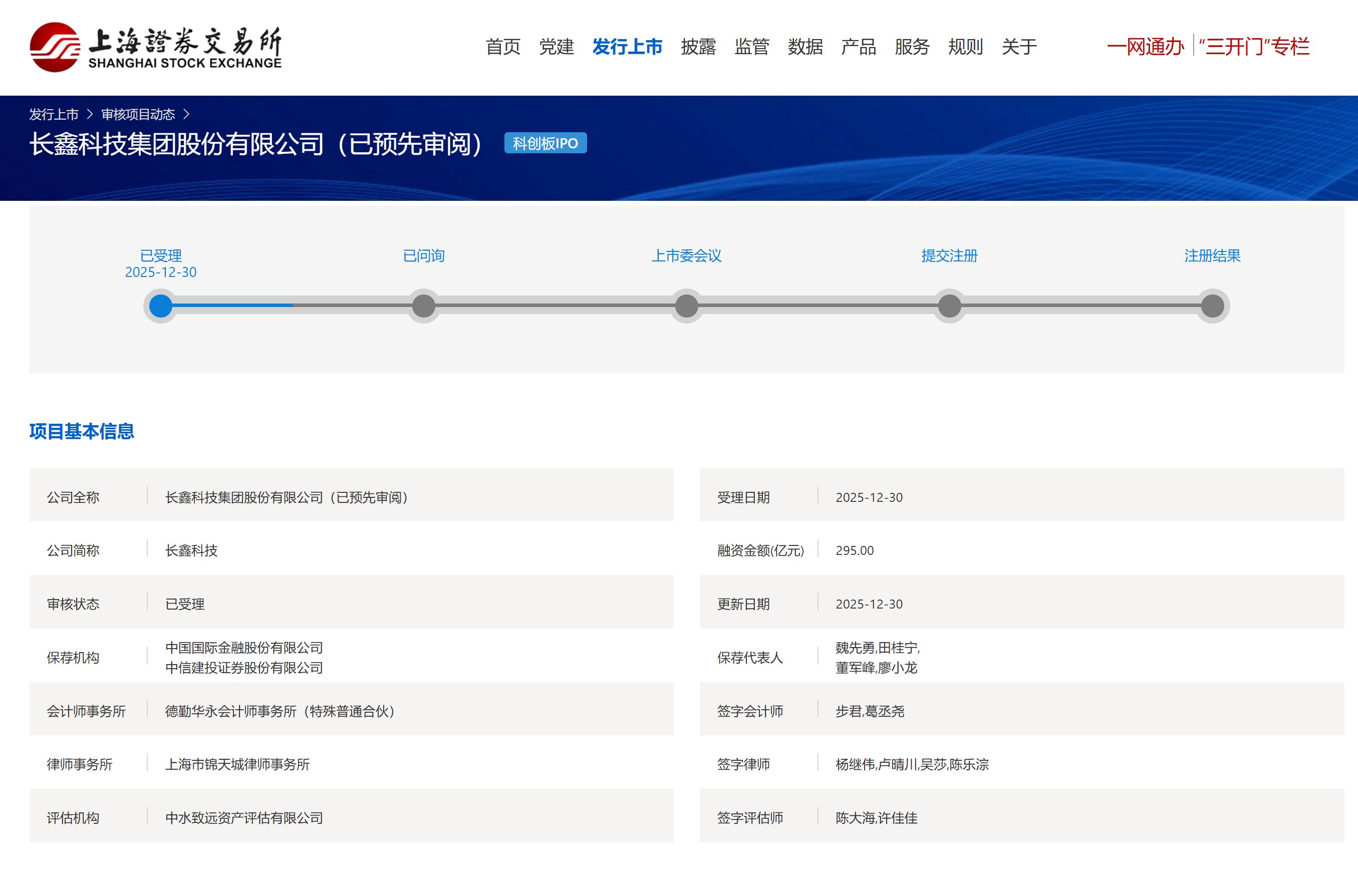 根据招股书,长鑫科技本次发行拟募资295亿元,投向三个项目:存储器晶圆制造量产线技术升级改造项目(75亿元)、DRAM存储器技术升级项目(180亿 元)、动态随机存取存储器前瞻技术研究与开发项目(90亿元)。 (文/观察者网 吕栋 编辑/张广凯) 中芯国际之后,A股再迎重量级芯片制造巨头。 12月30日,国产内存芯片巨头——长鑫科技集团股份有限公司(下称:长鑫科技)正式向上交所递交招股书,拟在科创板挂牌上市。 招股书截图 如果这一计划成功实施,长鑫科技295亿元的募资额,将位列近年科创板IPO融资额第二,排在第一的是晶圆代工龙头中芯国际,2020年的募资额为532亿 元。 长鑫科技成立于2016年,发展近十年,已经成为目前中国规模最大、技术最先进、布局最完整的动态随机存取存储器(DRAM)企业。 与台积电、中芯国际这种代工巨头不同,长鑫科技是IDM(垂直整合制造)业务模式,也就是研发、设计、制造一体化。这也是三星、SK海力士、美光等 存储巨头一贯采用的模式,特点就是重资产、高投入。 根据招股书,长鑫科技布局了DRAM晶圆、DRAM芯片、DRAM模组等多元化方案,产品主要覆盖用于电脑、服务器的DDR,以及用于手 ...