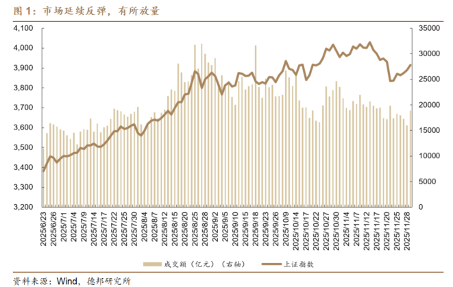 Market Overview - The A-share market experienced a significant increase, with the Shanghai Composite Index closing above 3900 points, marking a rise of 0.65% to 3914.01 points on December 1, 2025 [3] - The total market turnover surged to 1.89 trillion yuan, an increase of 18.3% compared to the previous trading day, indicating a broad recovery in market sentiment [3] Stock Market Analysis - The technology and cyclical sectors led the gains, particularly in consumer electronics, with notable increases in smart speakers, MCU chips, and TWS headphones, rising by 5.86%, 4.88%, and 3.37% respectively [4] - The insurance sector showed a decline of 0.76%, suggesting a decrease in defensive market sentiment [4] - The upcoming Central Economic Work Conference is anticipated to provide stronger economic stimulus signals, which could benefit cyclical sectors like industrial metals and building materials [4][6] Bond Market Analysis - The government bond futures market showed mixed performance, with the 10-year contract rising by 0.12% to 108.040 yuan, while the 30-year contract fell by 0.08% to 114.37 yuan [7] - The central bank's net withdrawal of liquidity did not hinder the overall easing of the funding environment, with short-term interest rates remaining low [7][8] - The bond market is expected to remain range-bound in the short term, influenced by the upcoming Central Economic Work Conference and the evolution of credit risks in the real estate sector [8] Commodity Market Analysis - The commodity index rose by 0.93%, driven by significant gains in precious metals, with silver prices reaching a historical high and copper prices hitting a yearly peak [9][10] - The black coal market rebounded after previous declines, with coking coal and coke prices increasing by 2.86% and 2.73% respectively, supported by supply constraints and improved market sentiment [11] Trading Hotspots - Recent popular investment themes include dividend stocks due to attractive yields and risk-averse positioning, AI applications driven by accelerated capital expenditures from global tech giants, and consumer sectors benefiting from currency appreciation and market style shifts [13] - The current market is characterized as being in a policy preheating phase, with recommendations for balanced allocations between technology and dividend stocks to mitigate sector rotation risks [13]