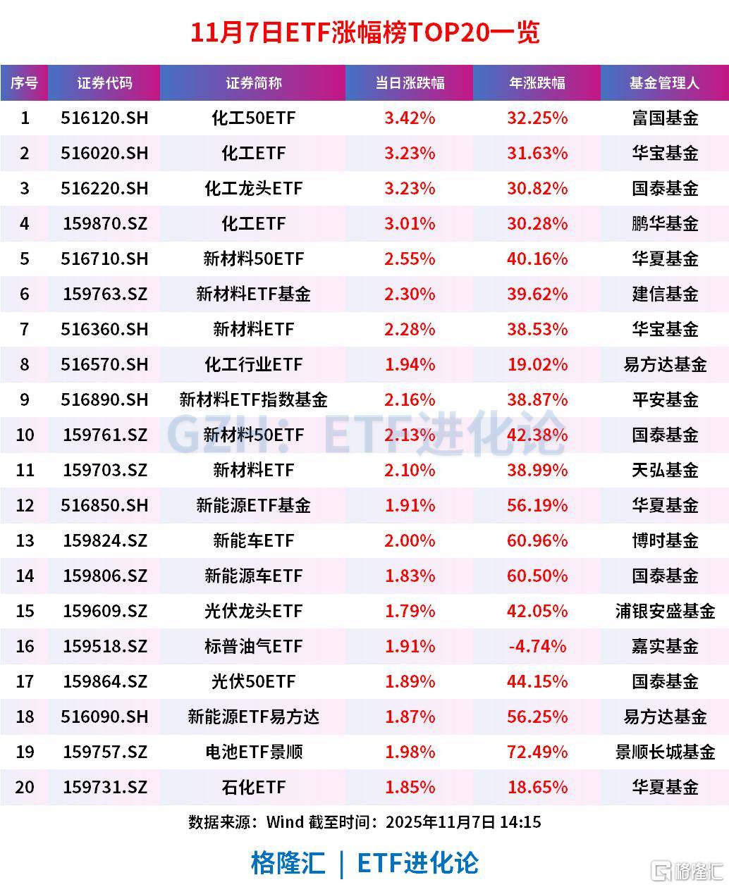 ETF收评 | 化工板块全天强势,化工ETF、化工龙头ETF涨超3%