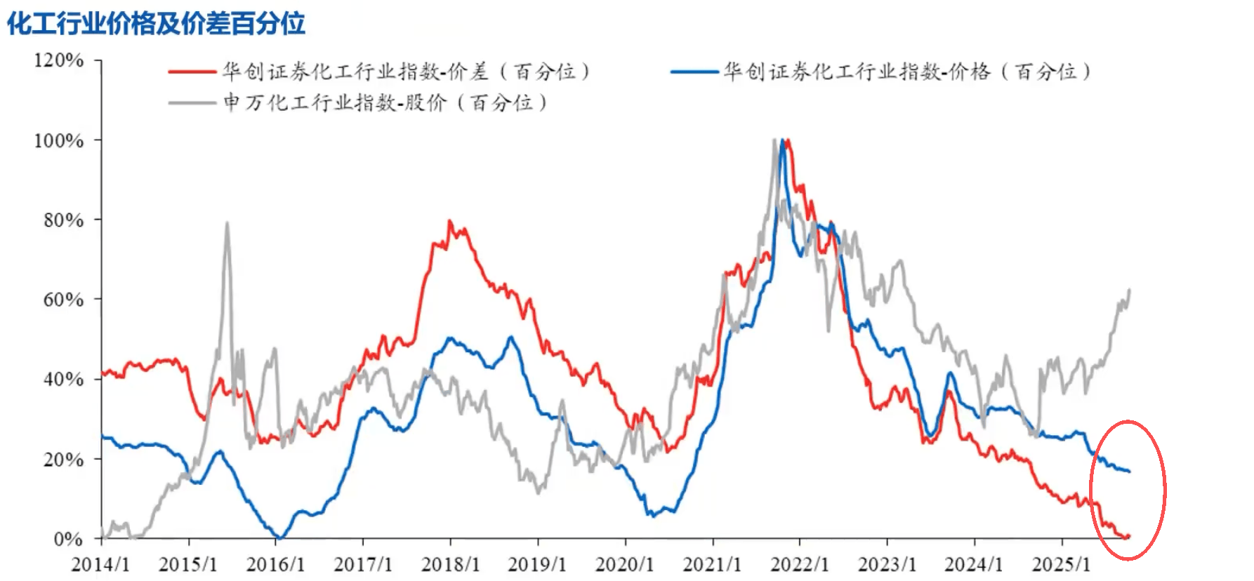 一、今日市场回顾 股市今日大幅回调,所有主要指数均收跌,所有板块均收于水面之下。高股息股表现出色而成长股受损最严重。反馈普遍认为,市场情绪降温源于区域政治 事件的不确定性和流动性减弱,但更多询问集中在"为什么是现在,为什么是今天"。这可能是由于不愿在整个周末持有大量风险敞口,也可能是投资者在假 期后经过一周的考虑,面对剧烈的市场风格转变而平仓。 具体来看,宏观扰动因素主要有以下两点: 持续的国际贸易摩擦忧虑,其实今天不止AH股,整个亚太股市都在收跌; 三、化工行业近期下跌原因:主要系宏观影响,行业方面磷化工回调显著 本周化工板块主要系磷化工回调显著,核心原因是部分资金关注Q3的涨价情况,在Q3涨价结束之后,Q4就会偏向淡季,那到淡季的时资金会做再平衡,因 此会产生调仓的过程。 此外部分短线资金,会在季报前埋伏,导致业绩放出后或者业绩下修后卖出,但是这并不影响对公司长期的价值判断。 四、化工行业基本面及后市展望 1、财报:Q3环比Q2略有增长,景气有所改善 2、基本面:从年度级别看化工板块仍处在历史的底部。 (1)价差:如下图红色的线条可以看到化工行业在历史的十年维度底部运行,甚至行业价差指数持续创十年最低点。 ...